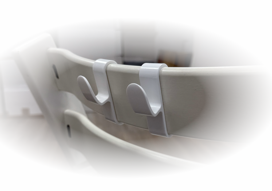 Unser Adapterset ermöglicht die einfache und sichere Integration von IKEA Trofast Boxen in deinen Tripp Trapp Hochstuhl. Das Set bietet maximale Funktionalität und Langlebigkeit durch den Einsatz hochwertiger, recycelter Materialien und ein durchdachtes Design. Die Adapter und die zusätzlichen Haken erweitern die Aufbewahrungsmöglichkeiten, ohne auf Komfort oder Ästhetik zu verzichten.